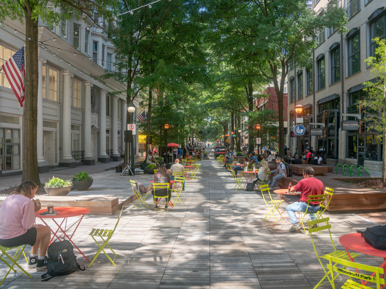 The Public Space Studio’s mission is to provide leadership in designing Atlanta’s public realm. The public realm is made of streets, parks, squares, and civic buildings. These are our public spaces; the land we all share as residents of our city. The quality of our public realm makes public life more enjoyable or less desirable. Our public spaces work best when they incorporate multiple functional and aesthetic components such as high-quality materials, flexible furnishings, canopy trees, good architecture, public art, pedestrian lighting, and more.